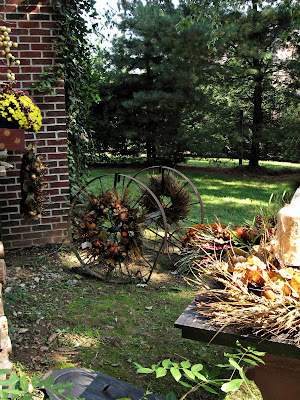 October is here. The mornings start out cool and warm up as the day goes on, and it gets chilly as the sun goes down. The sky is deep blue and the leaves are starting to put on their prettiest party dresses. Add to all that the fact that Halloween is coming--my favorite holiday. I have lots of ideas for decorating this year. Some I picked up on Saturday at Chester County Day. That's a day when you can drive around and look at some lovely and unique homes that you would never in your life see if they didn't open them up on that one day a year. So, thanks for showing them. Many were inspiring and just downright lovely. And they really get you in the mood for Fall. I don't know what I would do without it.