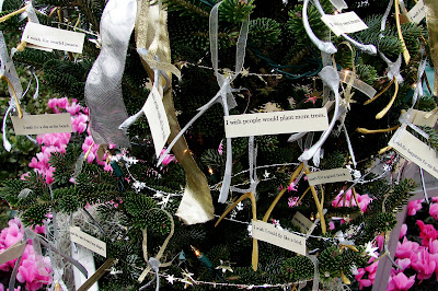 Click on the photo to see the Christmas wishes of a third grade class who decorated this little tree for Christmas. The wishbone ornaments are a nice touch.